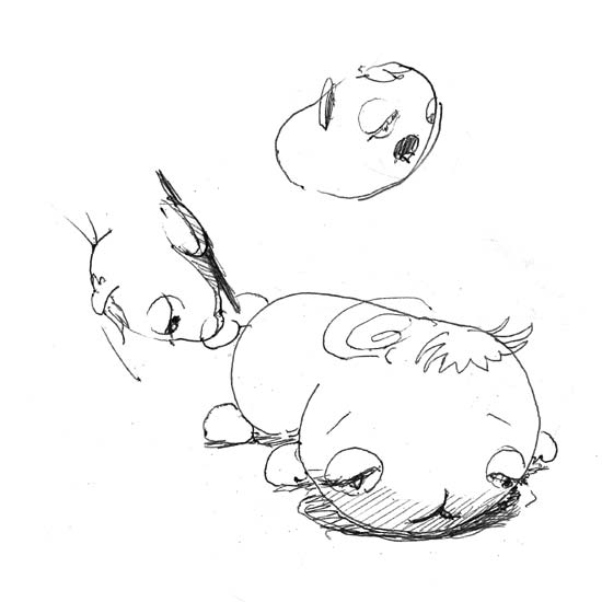 シードン誕生を前提に、その仲間を考える。結果は、なにやら覇気のない生き物たちばかり浮かんできた。廃れた流行語「癒し系」が脳裏をよぎったが、ハヤリ言葉は陳腐化すれど、柔らかくて・丸くて・暖かくて、加えて動きの鈍い、その上、体毛の豊かな生き物はこの先もズーっと人にとってカッワイイーのだ。 仲間を増やしてあげなければと思いつつ、敵はどうしよう??? いや待て!先ずはシードンの誕生を!