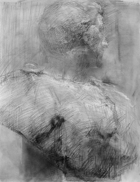 上の作例と比較すると、実物の石膏像は肩から腋にかけての断面がもっと 明るく