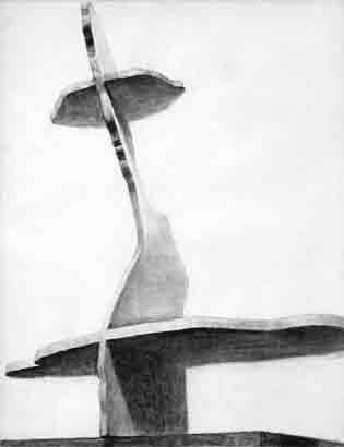 有機的な形態には連続した起伏の道筋が随所に見て取れる。その流れを追ってつかむことで、動きの硬さを取り払うことができる。強く、濃く押しつけられた地点から、緩やかに流れてたどり着く次の地点へと、素材(木炭・鉛筆)の痕跡にもリズム感を与えながら‥‥‥