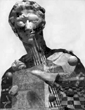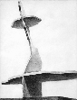 向かって右側の眼は、なんとなくムササビが空を跳ぶ姿に似ている。鼻の下の陰と影を合わせた形は泳ぐエイの姿に見える。左右の背景も縦横の直線と自由曲線に囲まれてできた図形として見る。拾った図形たちを用紙上に上手く配置(眼を開けて行う福笑い?)すれば、似る。